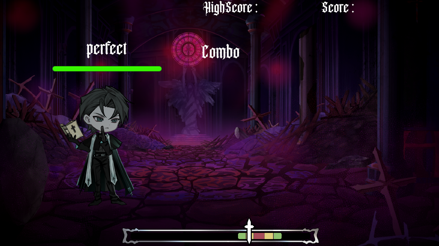 - Rhythmic Combat: Master the flow of battle using Arrow Keys and the Spacebar. Time your strikes as the Holy Cross reaches the Red Line.
